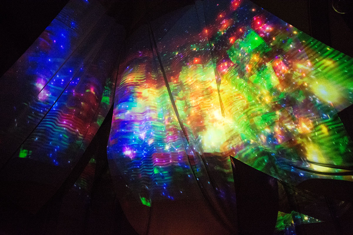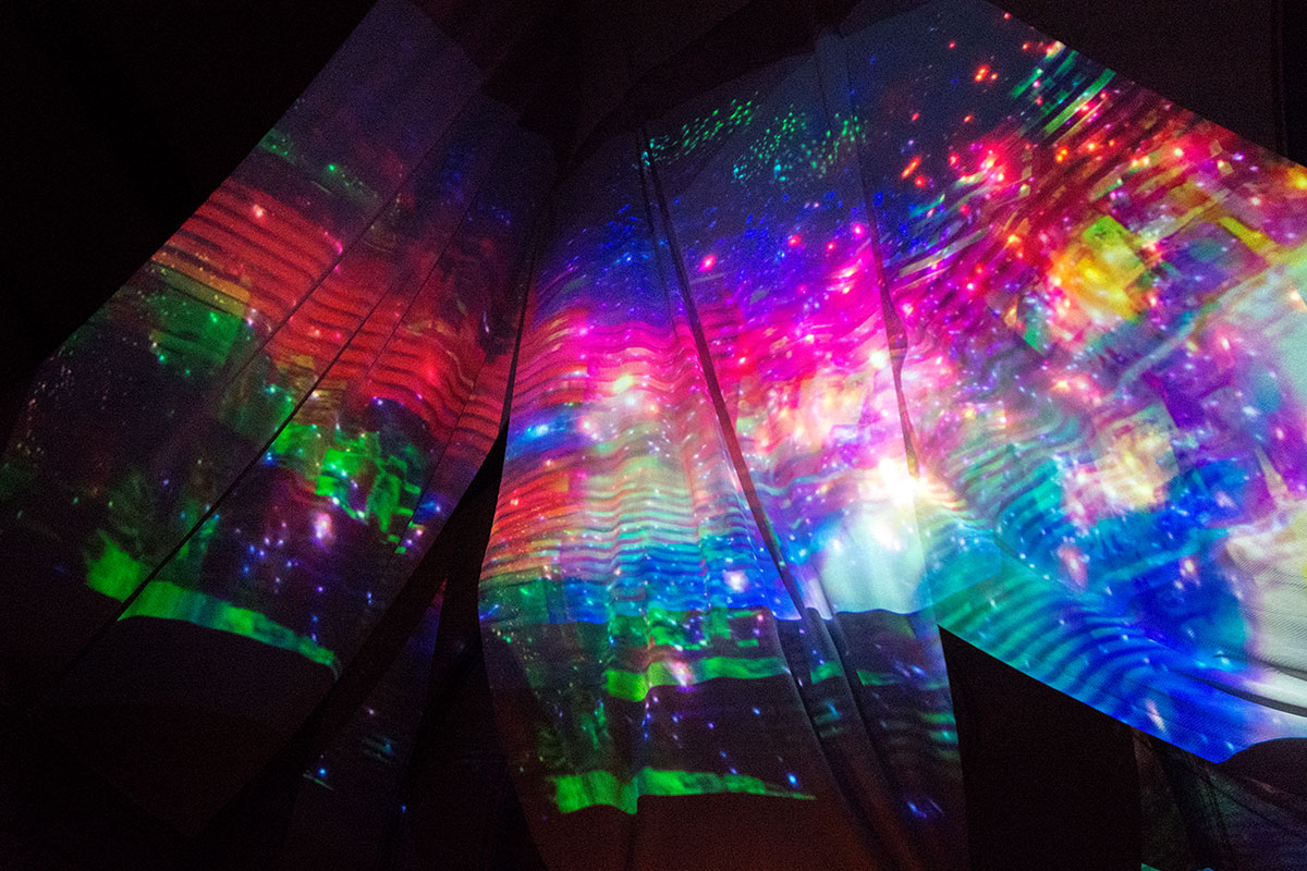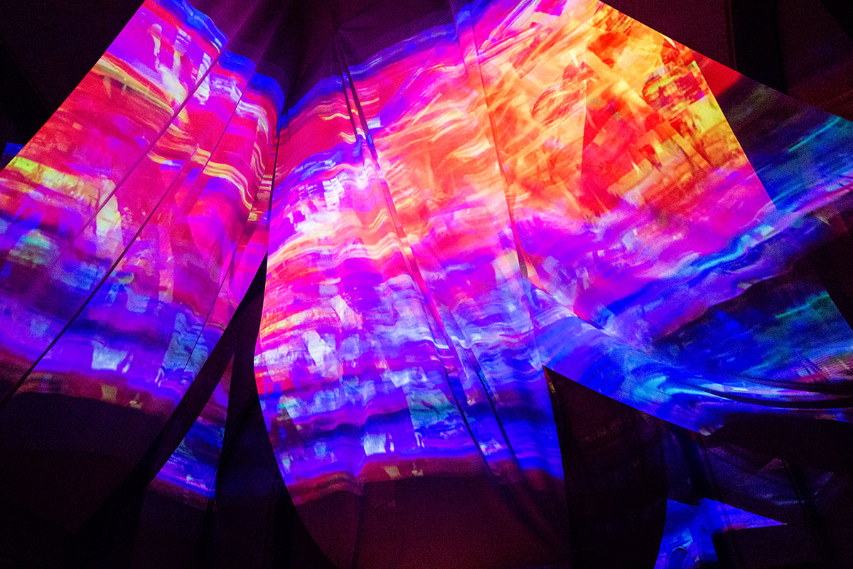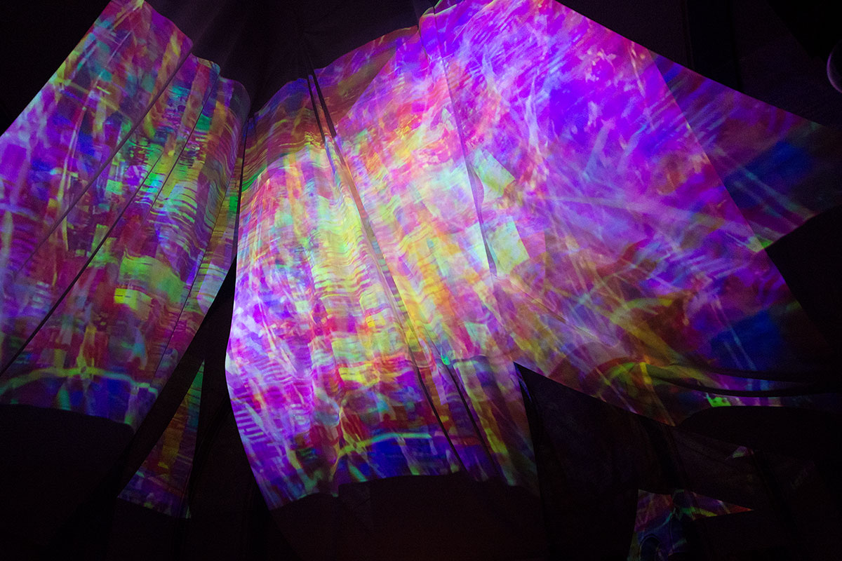 Die Aufzeichnung der Video-Klang-Performance „Passion D'Image“ vermittelt einen Eindruck der Videoinstallation. Die Videobilder wurden mit drei Projektoren auf Stoffbahnen in das Kuppelgewölbe der Erlöserkirche in Langenfeld gestrahlt und bildeten einen dreidimensionalen Farb-Klang-Raum.